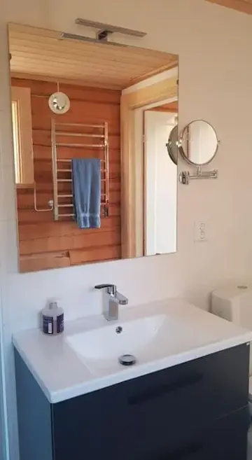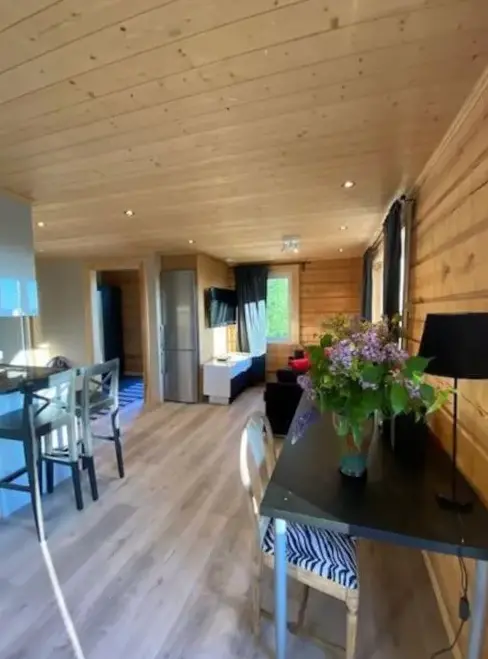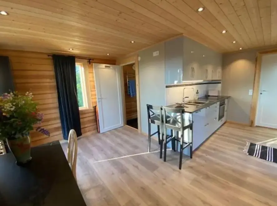 Nous convenions à 3 adultes avec un lit double et un grand canapé-lit. Belle terrasse avec une superbe vue sur le lac Siljan. Parking privé pour voiture.